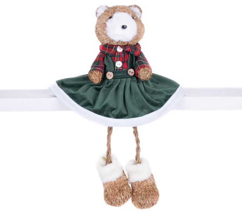 Decorațiune de Crăciun MagicHome ursuleț în rochie verde, 17x14x26 cm