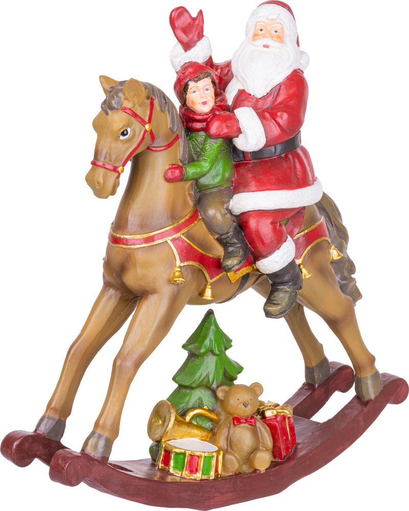 Decorațiune de Crăciun Moș Crăciun cu copil pe cal, polyresin, 30 cm