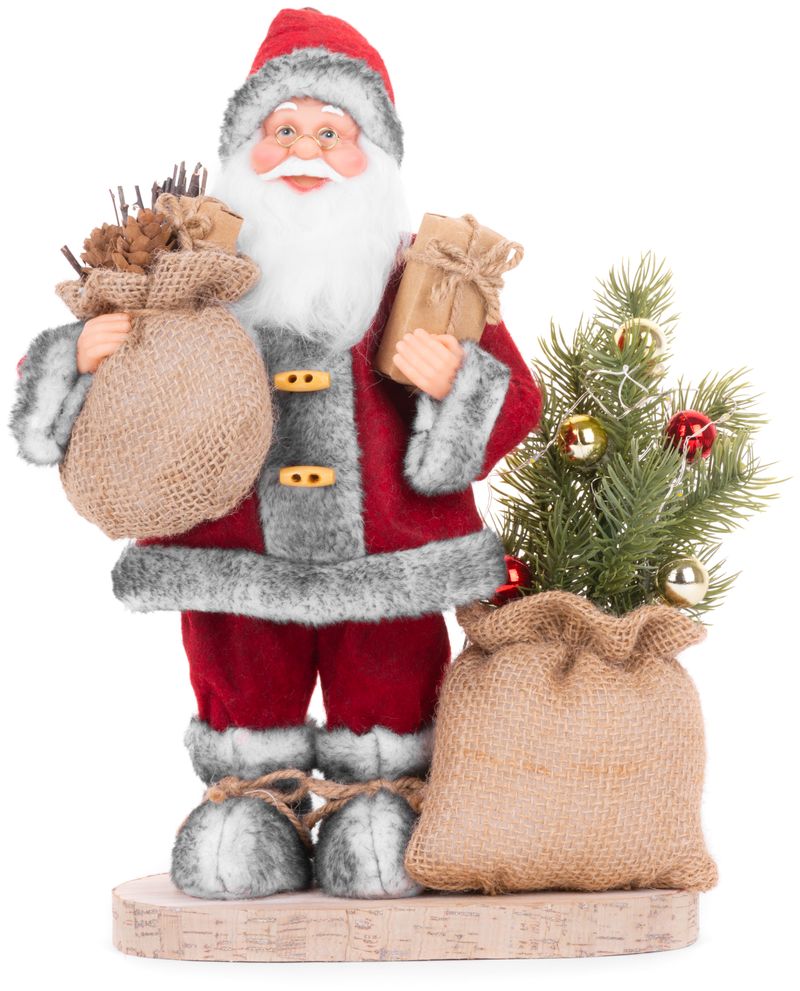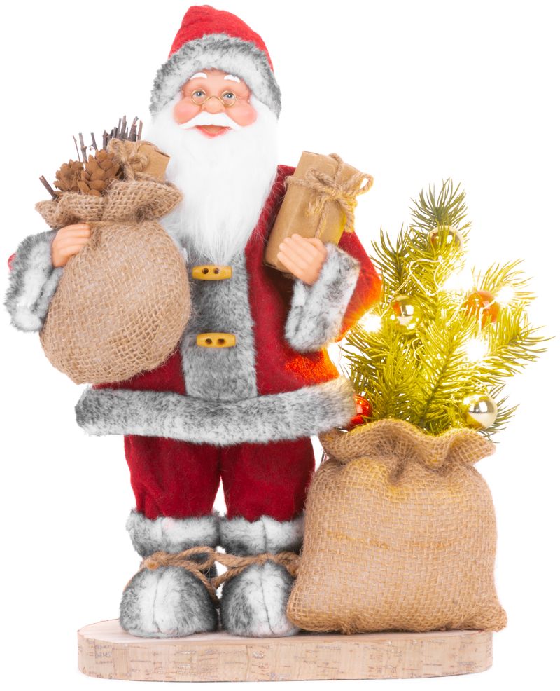 Decoratiune de Craciun Mos Craciun cu sac, bradut LED si cadou, 30 cm