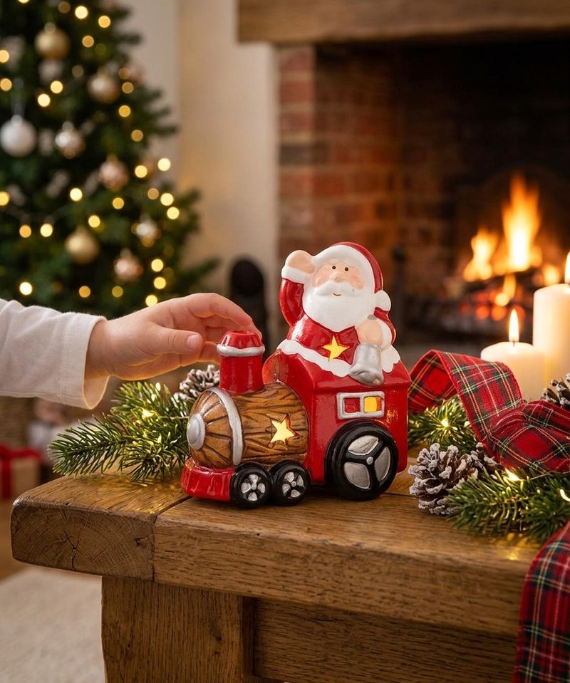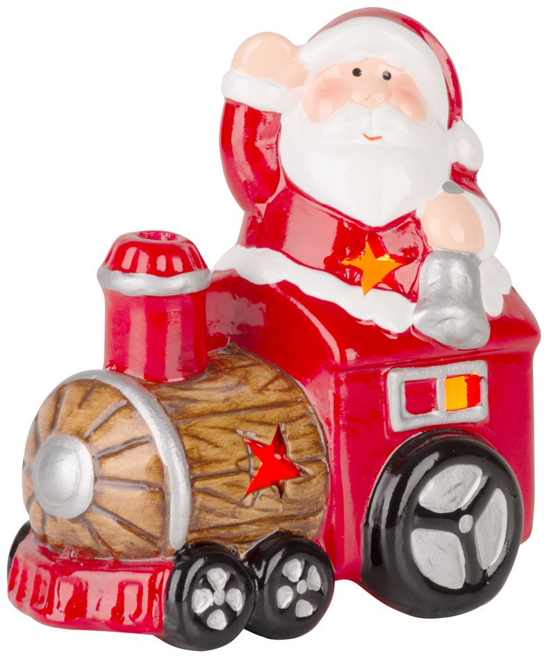Decorațiune de Crăciun Moș Crăciun cu trenuleț LED, teracotă