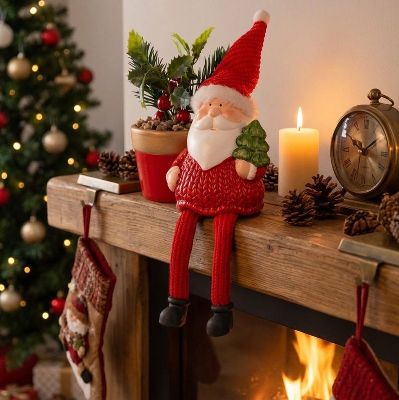 Este potrivită pentru a completa decorul de pe rafturi, comode, mese festive sau pervazuri, oferind o atmosferă caldă și primitoare. Ghiveciul decorativ și detaliile de sezon creează un aspect plăcut, ușor de integrat în amenajările de Crăciun.