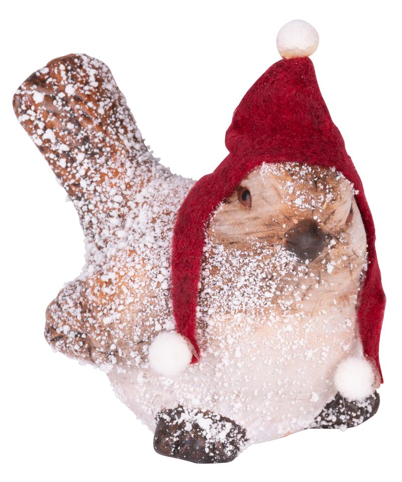 Decoratiune de Craciun pasare cu caciula, teracota, 8,8x6x9 cm