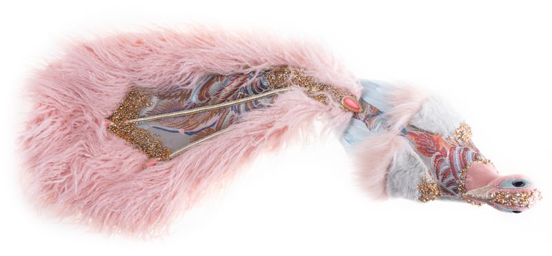 Designul său rafinat, completat de coada lungă și pufoasă, transformă acest ornament festiv într-un punct de atracție pentru orice încăpere. Nuanța roz oferă un aer modern și sofisticat, ideal pentru interioare decorate creativ și cu bun gust.