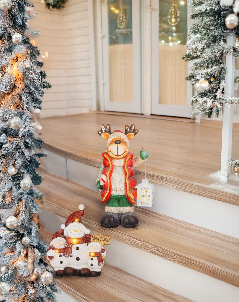 Felinarul iluminat discret pune în valoare întreaga decorațiune și oferă un plus de căldură vizuală, perfect pentru serile de iarnă. Designul simpatic al renului se potrivește excelent în case decorate în stil clasic, rustic sau jucăuș.