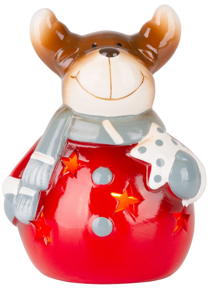 Decorațiune de Crăciun ren zâmbitor cu LED, teracotă, 12,5 cm