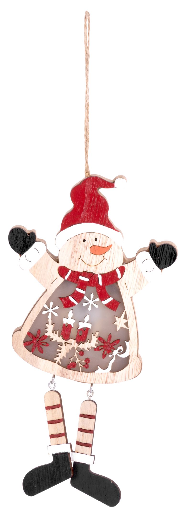 Decorațiune de Crăciun suspendată Om de Zăpadă cu LED, MDF, 23,5 cm