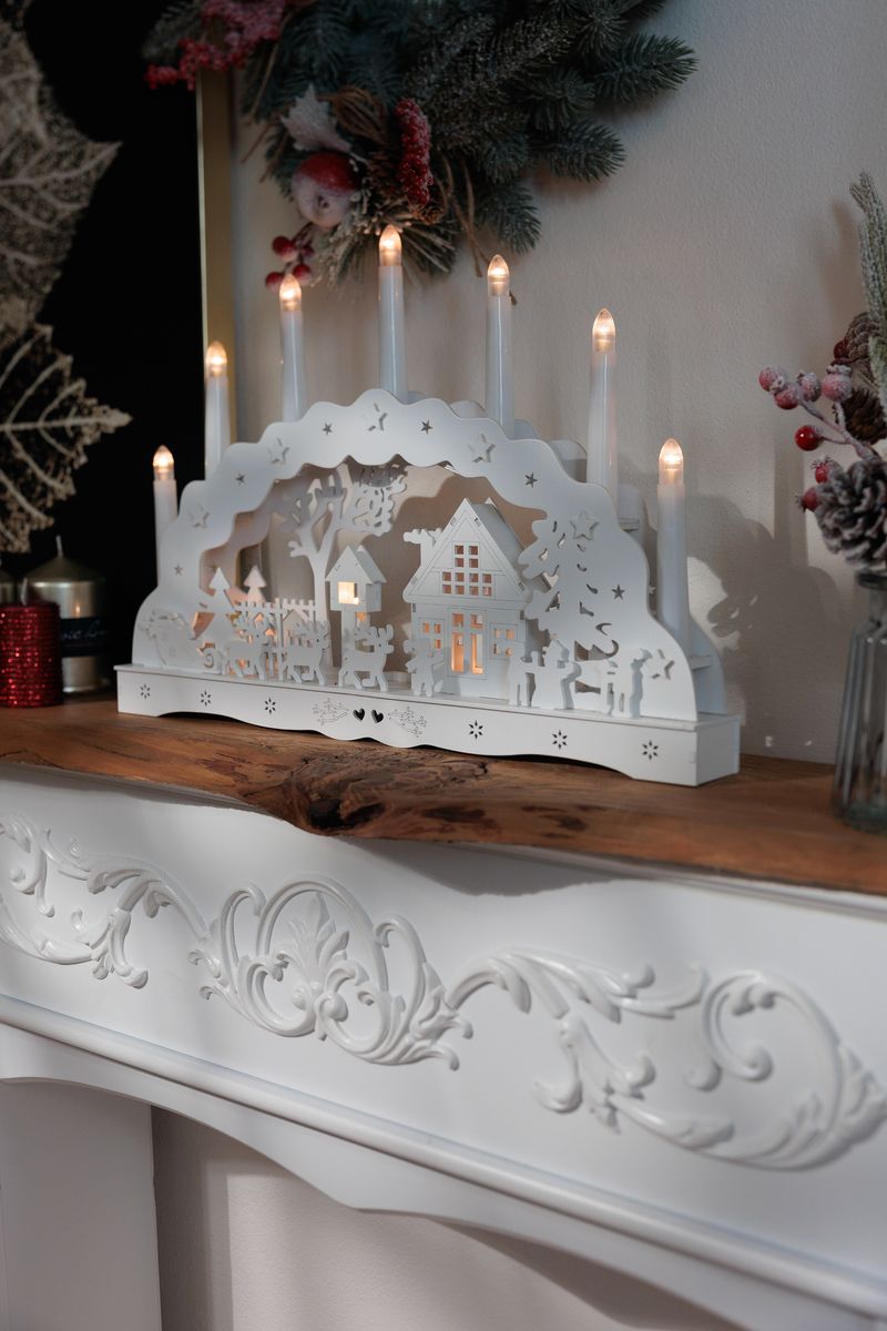 Adauga un plus de farmec decorului de sarbatoare cu aceasta decoratiune de Craciun tip casuta de la MagicHome. Realizata din plastic si iluminata cu 10 LED-uri alb cald, piesa creeaza o atmosfera primitoare si festiva in orice incapere. Designul sau delicat, inspirat de un peisaj de iarna cu casuta, copaci si figurine, o face ideala pentru amenajarea ferestrei, a raftului sau a mesei.