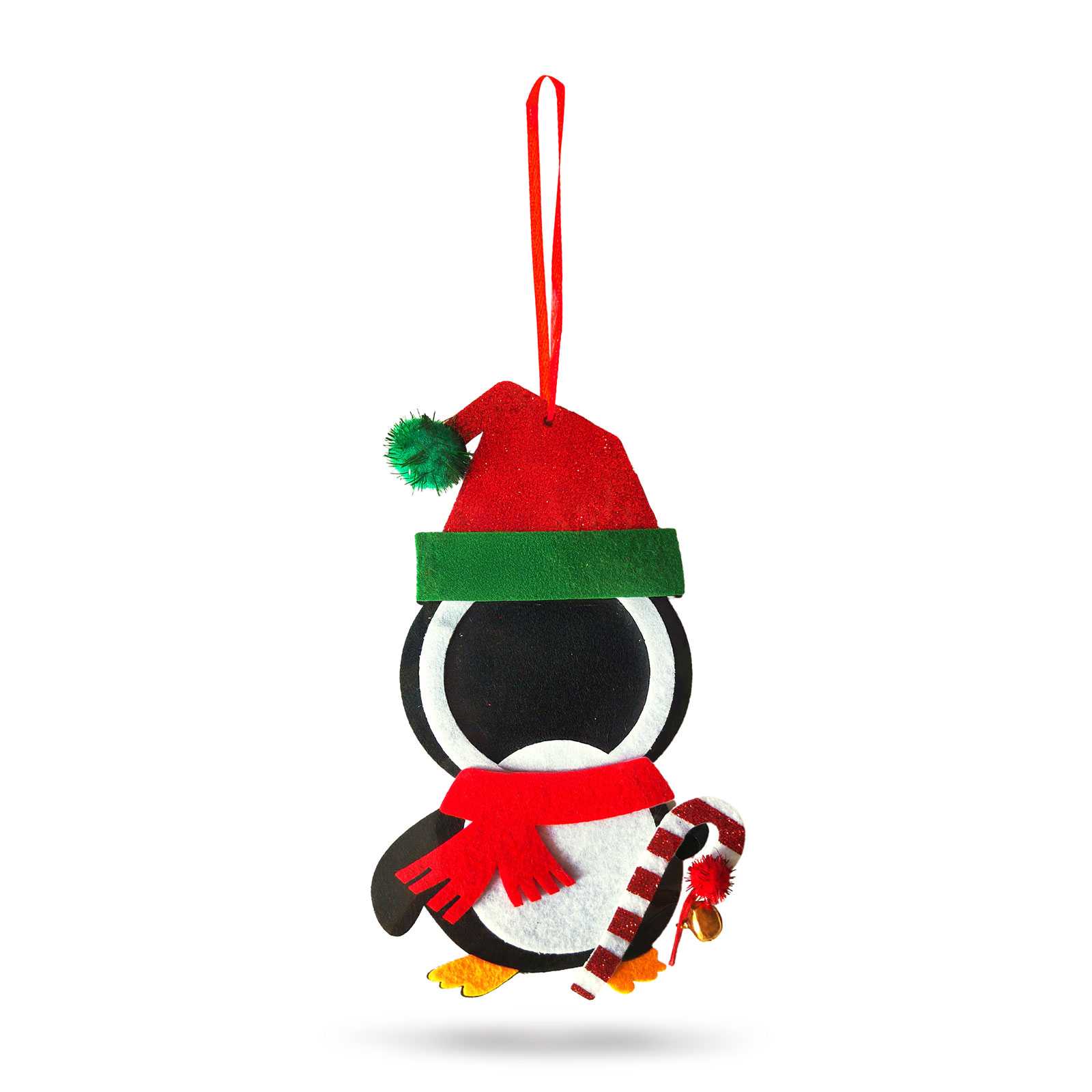 Decorațiune foto din fetru – cu clopoțel – model turtă dulce, Moș sau pinguin – 13 x 17 cm – suspendabilă Best CarHome