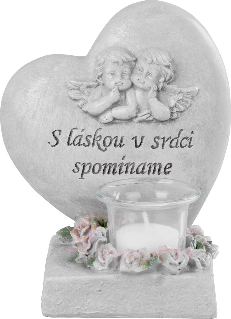 Decorațiune funerară inimă cu îngerași și suport lumânare, 15,5x12x17,5 cm