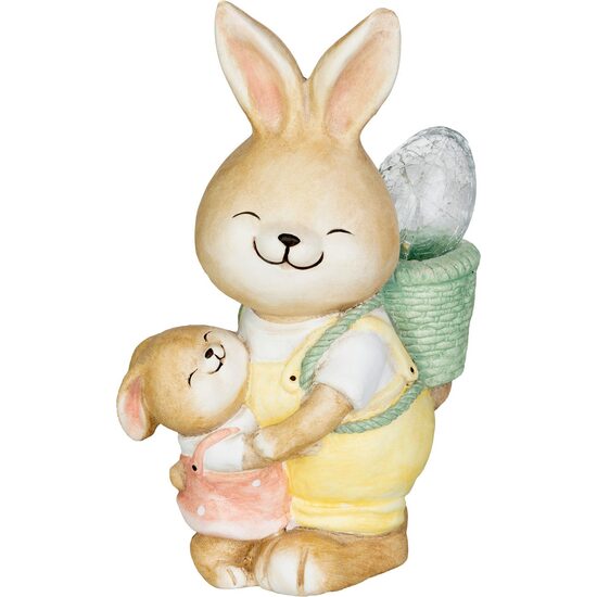 Decoratiune gradina, ceramica, solara, iepuras cu pui si cos cu ou, LED, 17.8x25.5x39 cm, MagicHome GartenVIP DiyLine