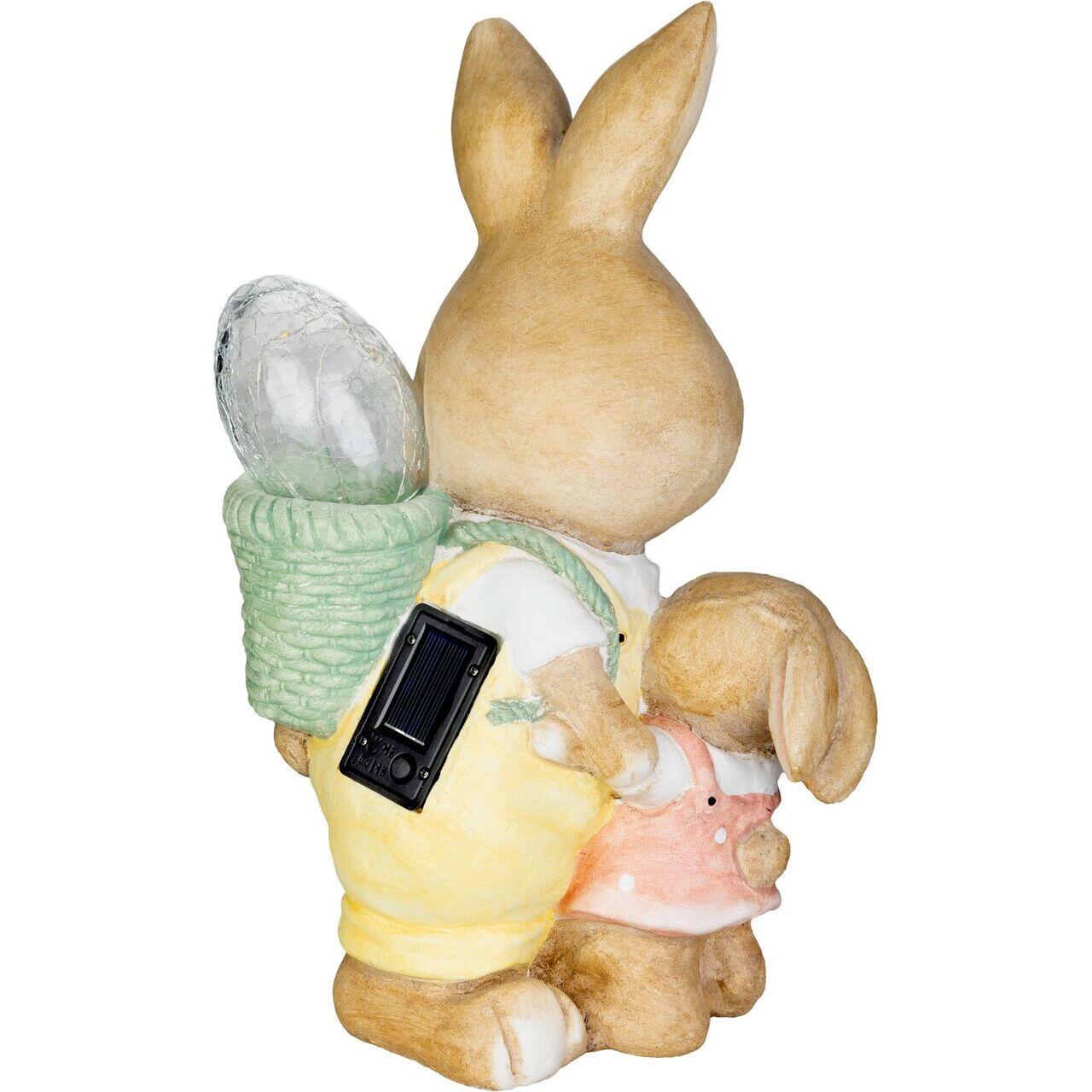 Decoratiune gradina, ceramica, solara, iepuras cu pui si cos cu ou, LED, 17.8x25.5x39 cm, MagicHome