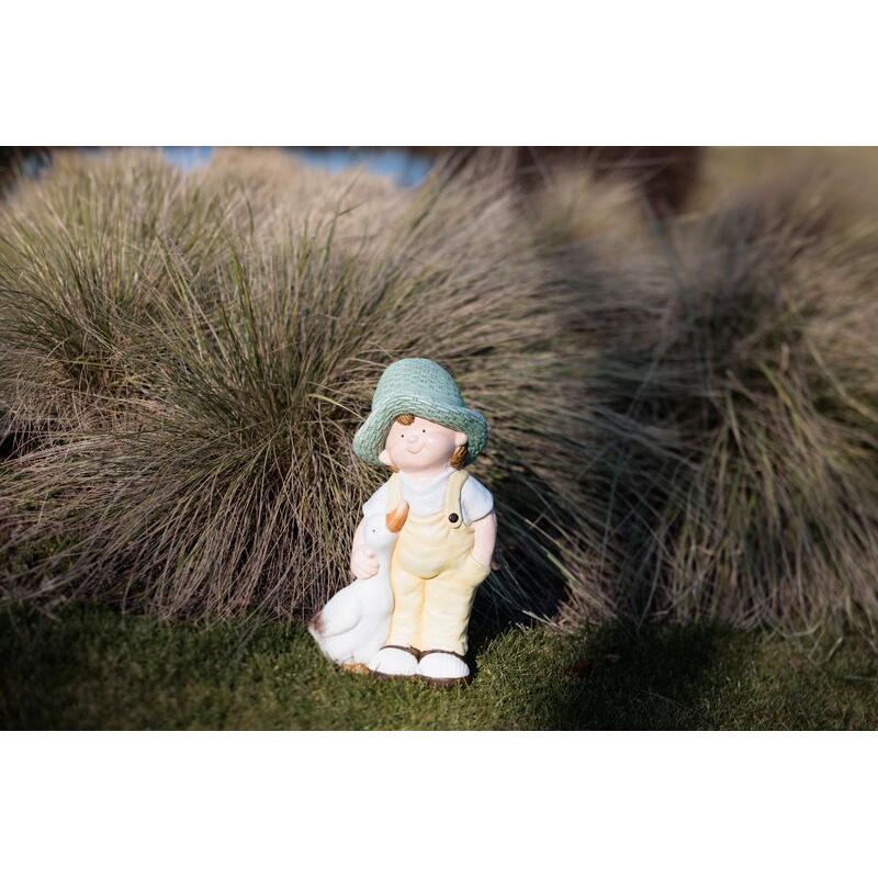 Decoratiune gradina, MagicHome, ceramica, baiat cu rata, 15.5x25.5x44.5 cm GartenVIP DiyLine