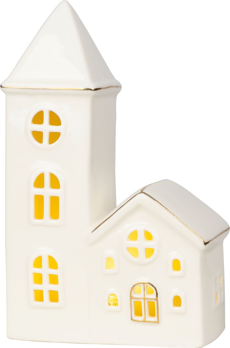 Decorațiune LED tip bisericuță din porțelan alb MagicHome, 17,4 cm