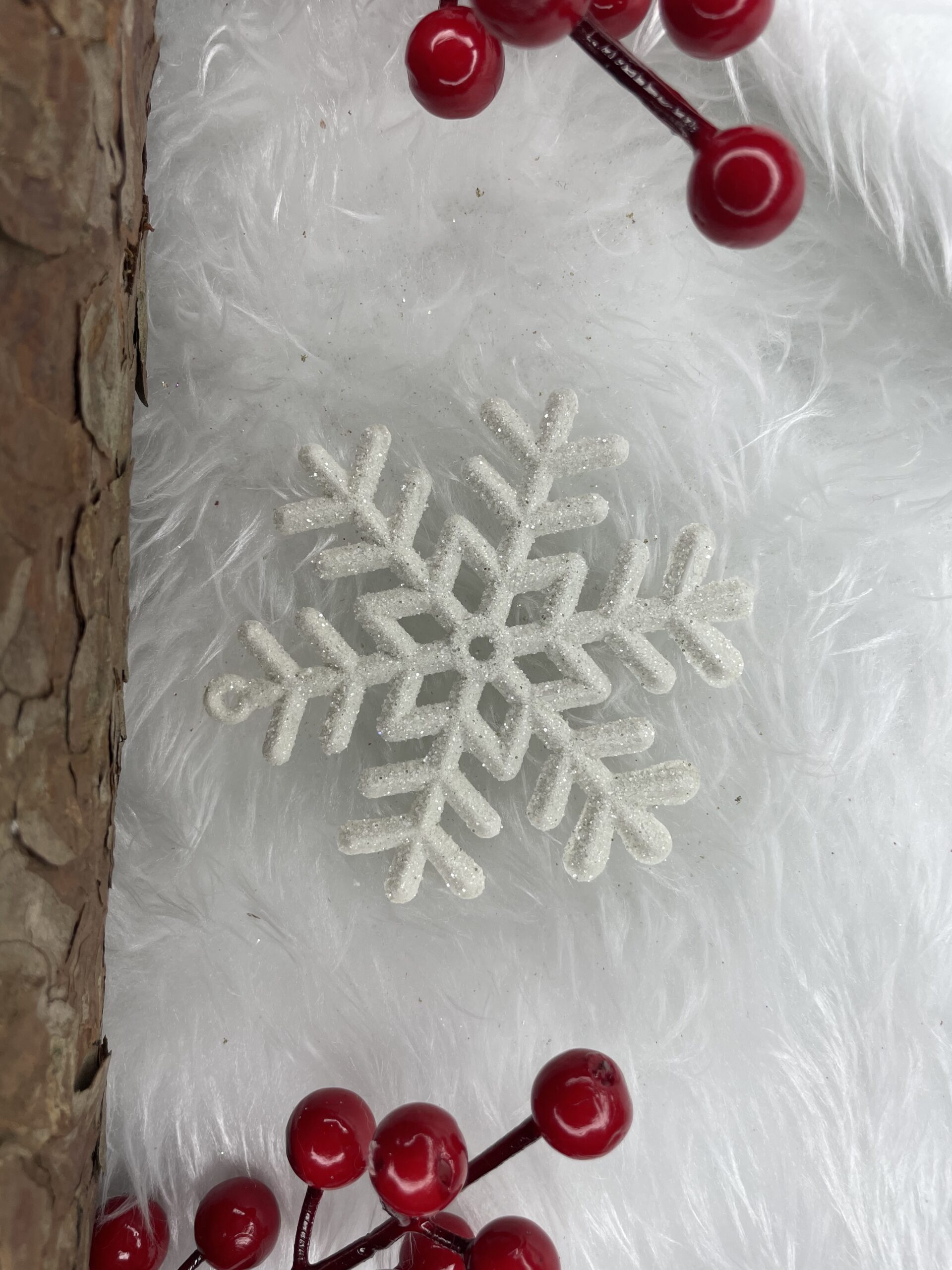 Decoratiune pentru brad fulg de zapada alb cu sclipici, set 3 bucati, 8 cm