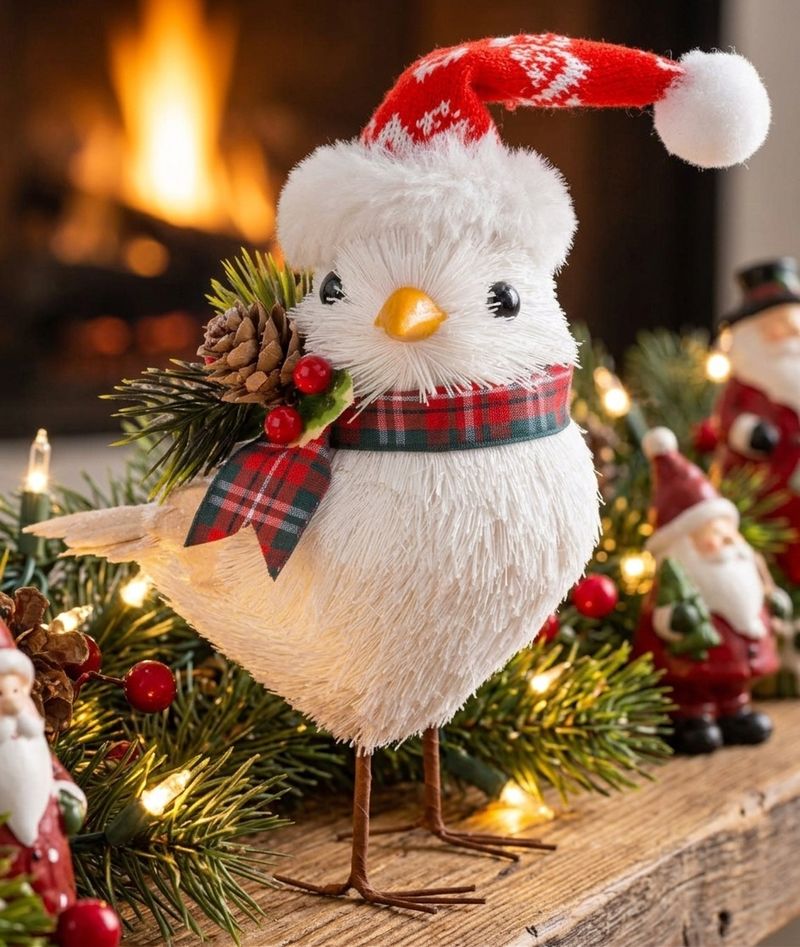 Adaugă un plus de farmec sărbătorilor cu această decorațiune de Crăciun MagicHome, realizată sub forma unui simpatic pui decorativ. Designul său festiv, cu căciuliță roșie, fundă în carouri și detalii naturale, este ideal pentru a completa un decor de Crăciun cald, prietenos și plin de personalitate.