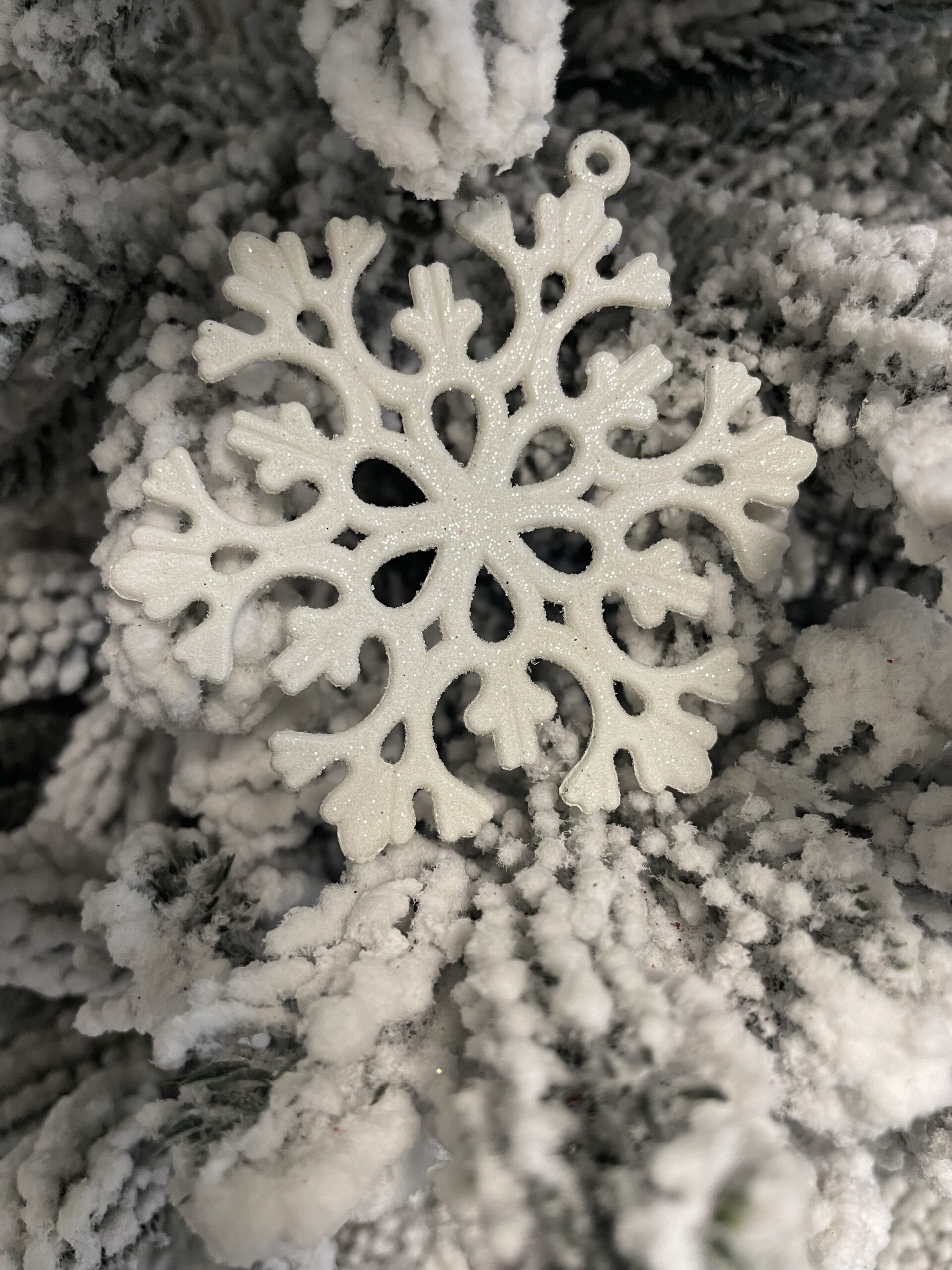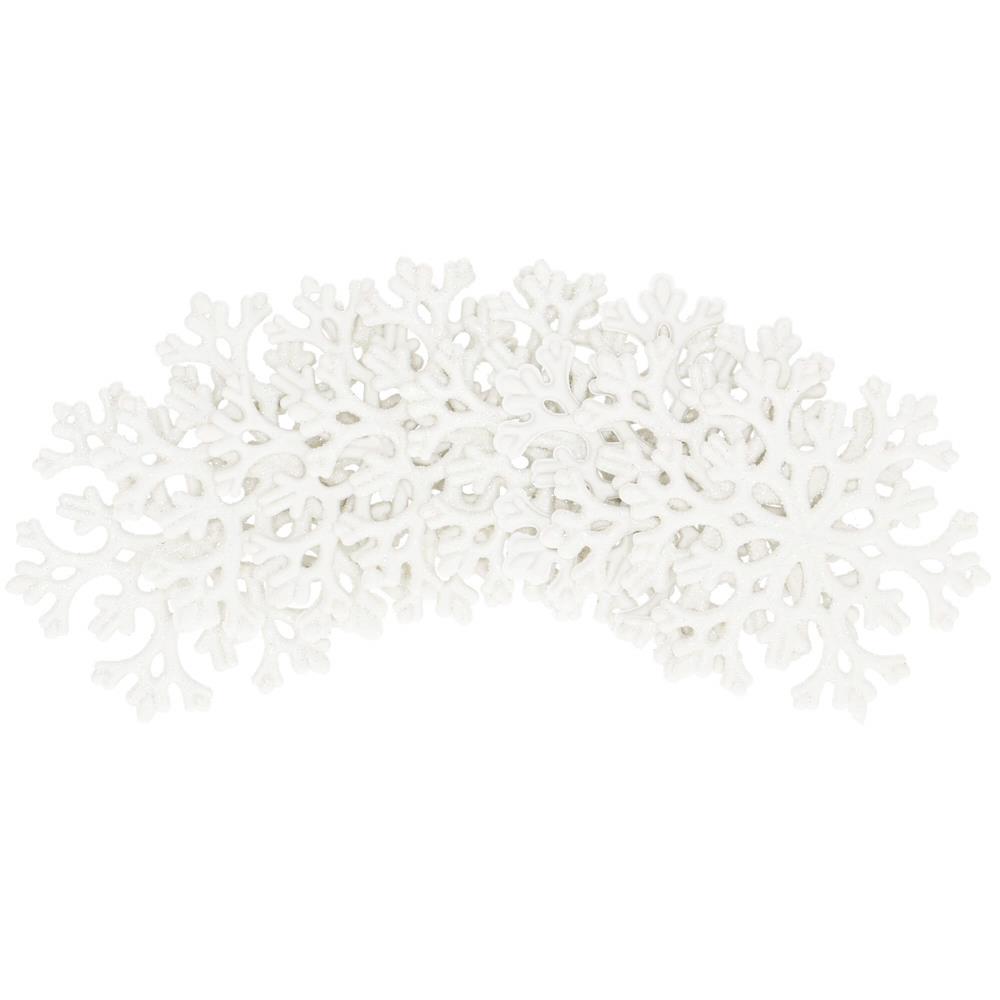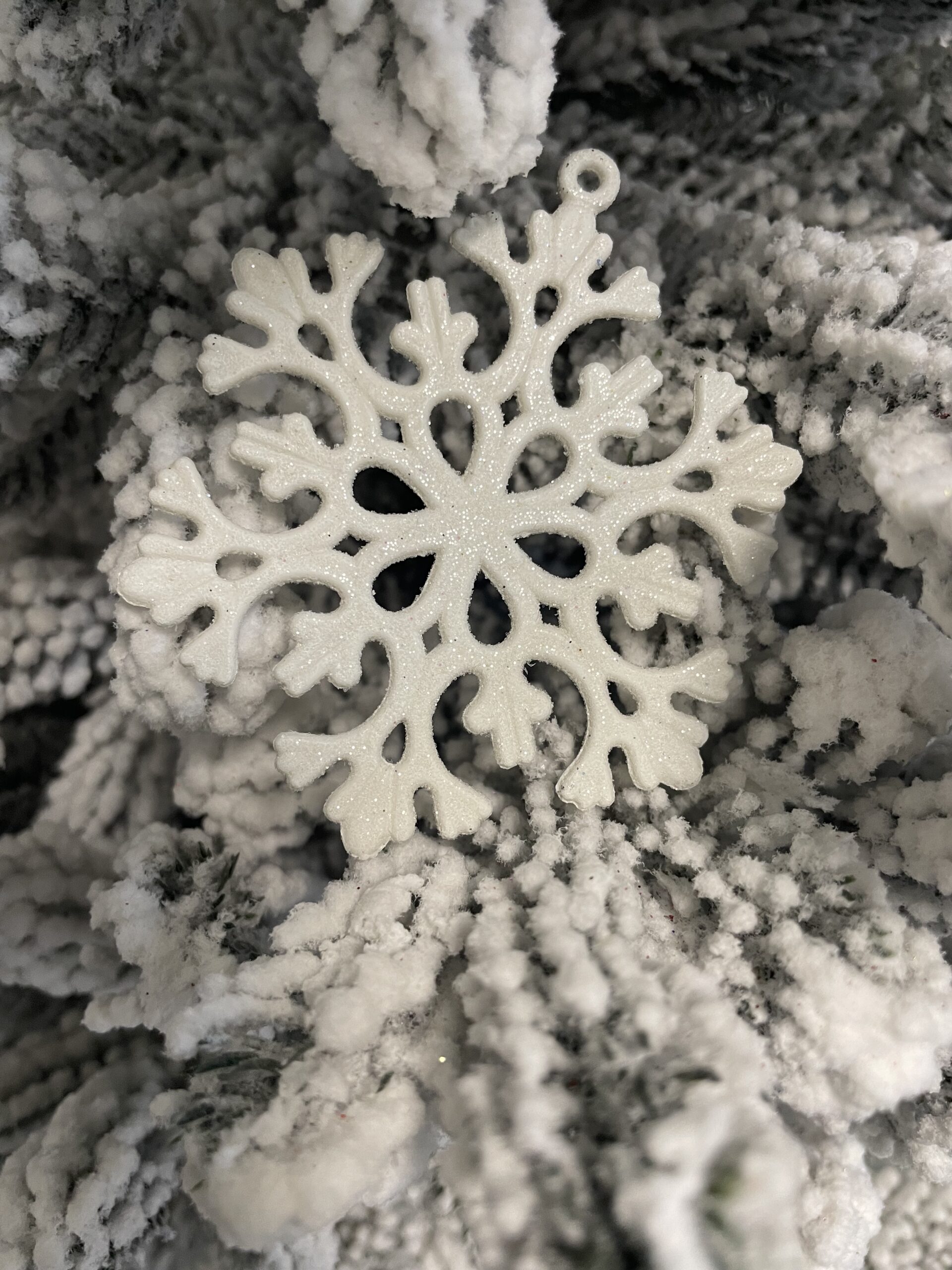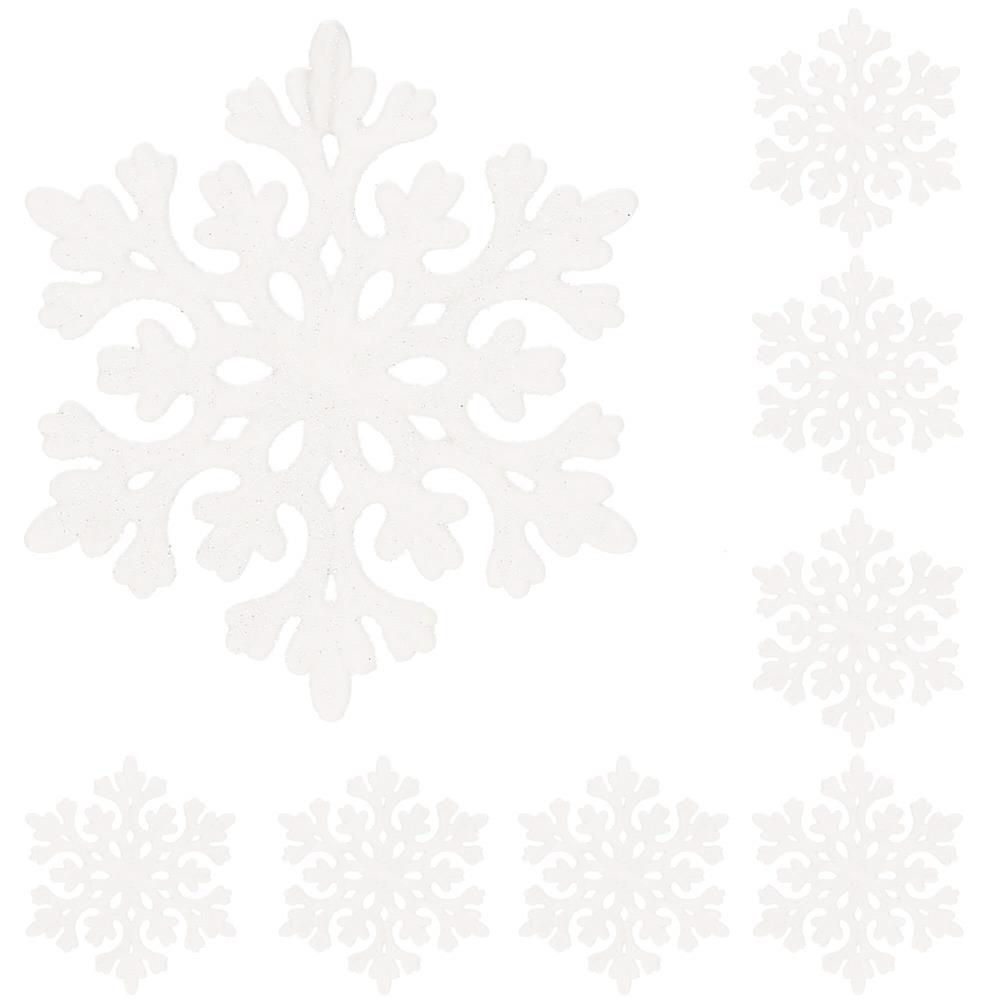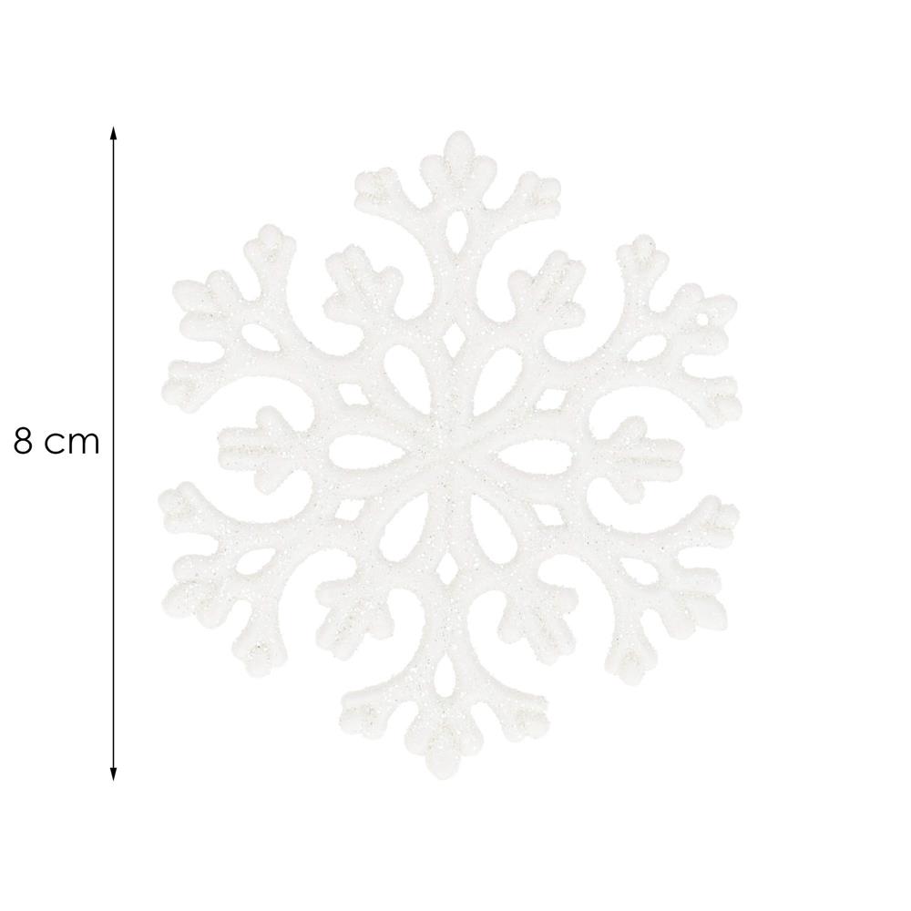 Decoratiuni pentru brad fulgi de zapada albi cu sclipici, set 8 buc, 8 cm