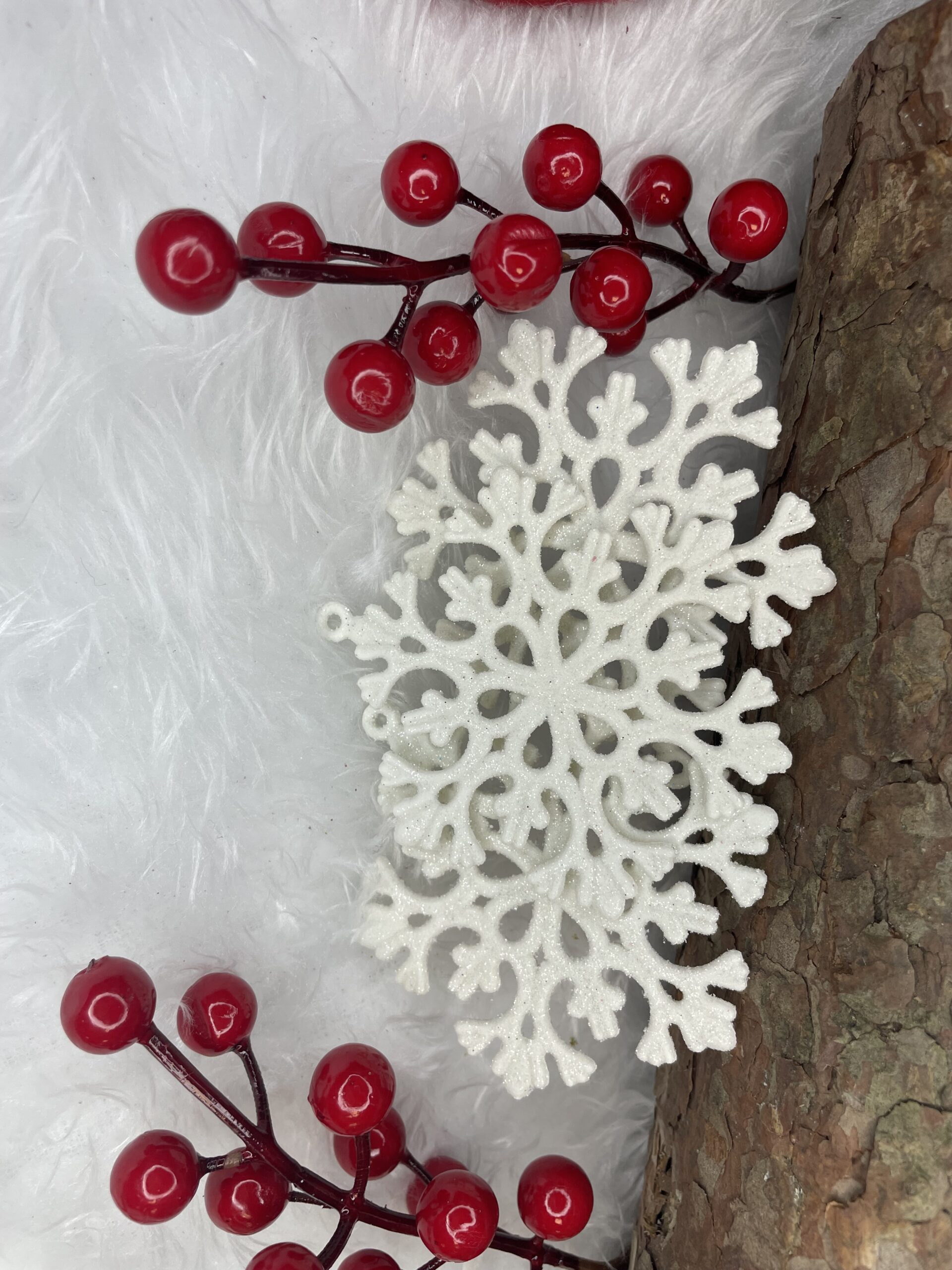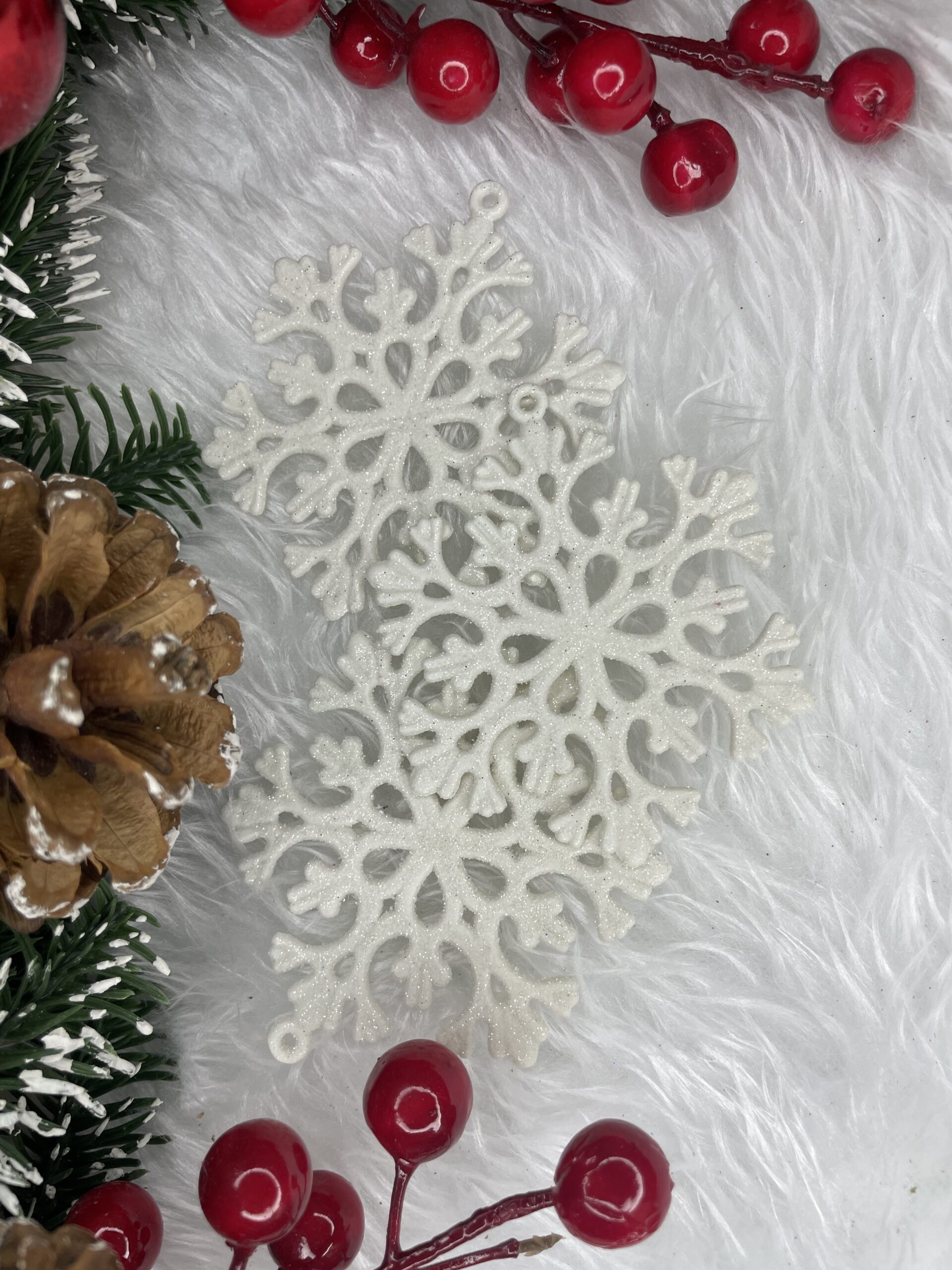 Adauga un plus de farmec sarbatorilor cu aceste decoratiuni pentru brad in forma de fulgi de zapada, realizate in nuanta albă si finisate cu sclipici delicat. Setul contine 8 piese cu design elegant, potrivite pentru a crea un decor festiv luminos si armonios in bradul de Craciun, pe coronite sau in aranjamente de iarna.