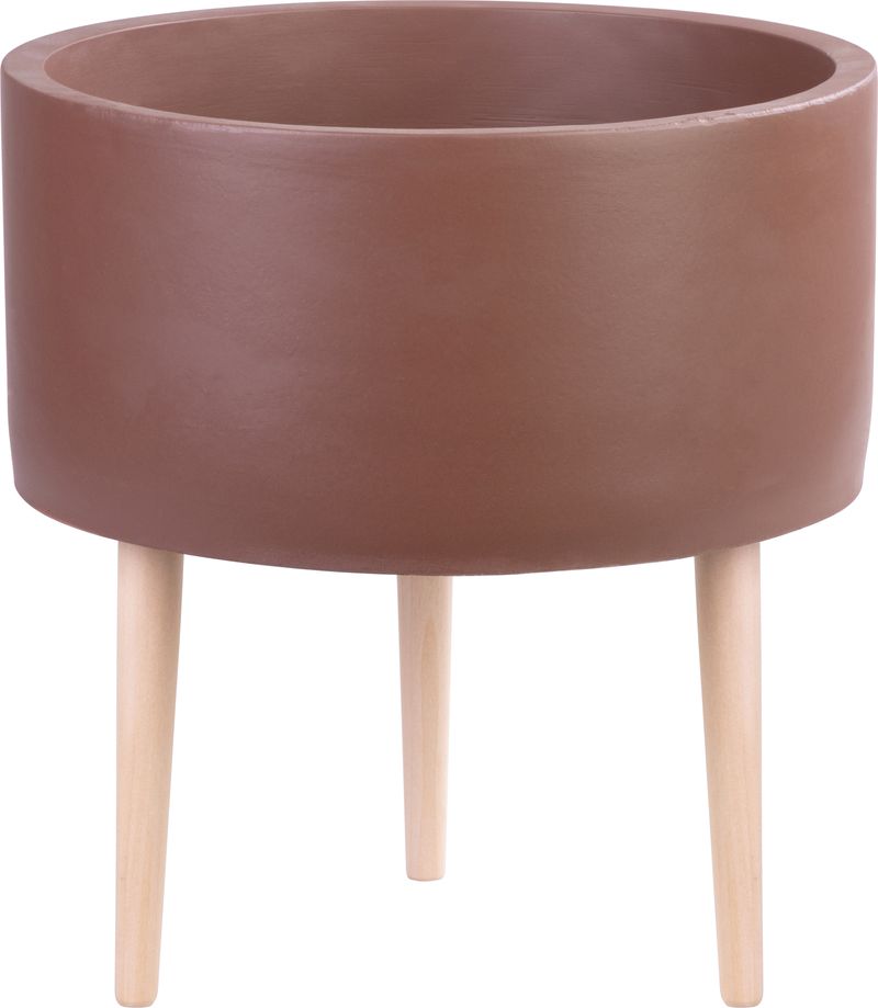 Tento keramický kvetináč vo farbe kapučíno sa hodí do každého domu. Moderný dizajn na drevených nožkách. Je vhodný ako doplnok pre skrášlenie izieb, terás, záhrad alebo vchodu do domu. Rozmery kvetináča sú 32x32x33 cm.