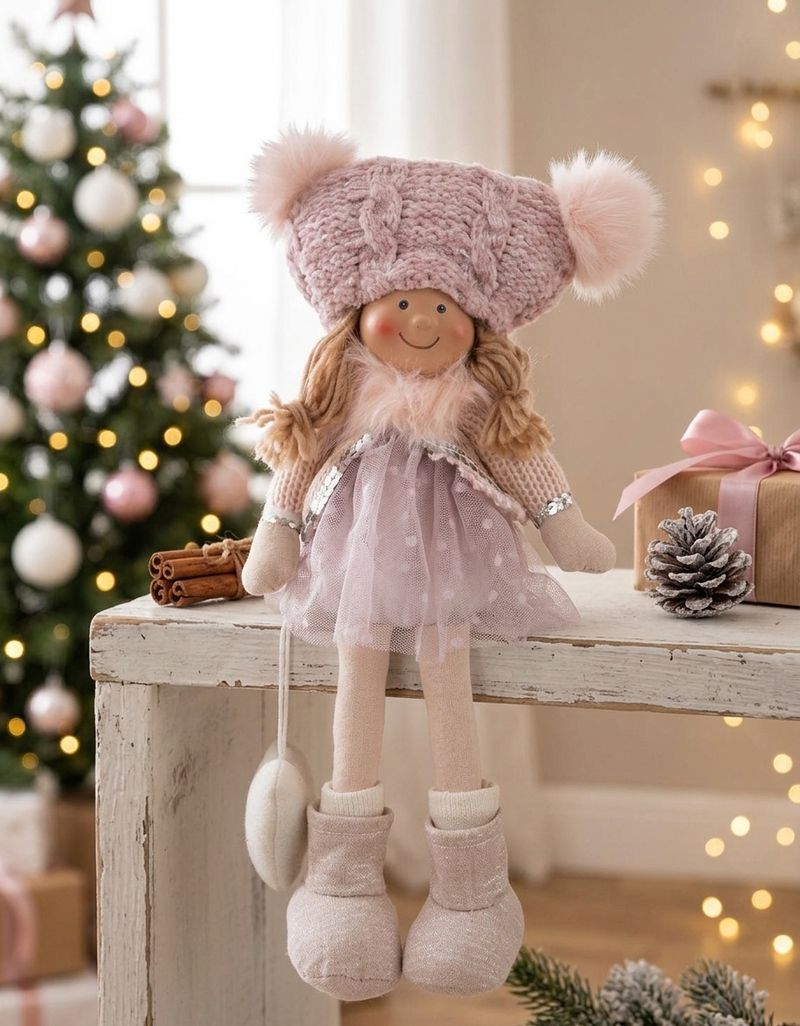 Krásna dekorácia deti skrášli váš domov počas vianočného obdobia. Farba je ružová. Dekorácia je vyrobená z tkaniny, plastu, bavlny, piesku a jej výška je 22 cm.