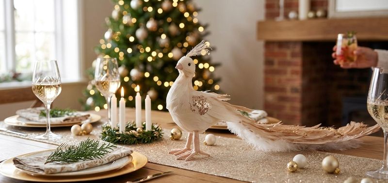 Krásna dekorácia MagicHome páperový páv skrášli váš domov počas vianočného obdobia. Farba je zlatá. Rozmer dekorácie je 34x12x15 cm.