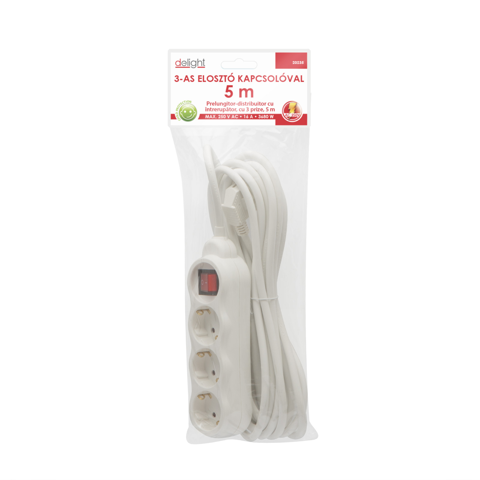 Delight - Prelungitor cu distribuitor 3 prize, cu intrerupator - 5 m Best CarHome