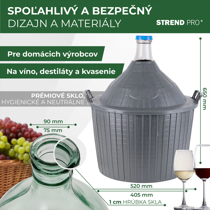 Demižon din sticlă 54L Strend Pro cu protecție din plastic, pentru vin
