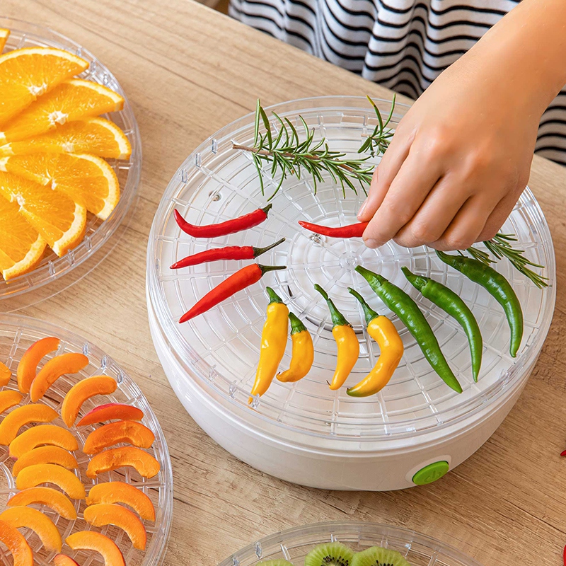 Amestecați fructele preferate, care pot fi fructe de pădure, fructe tropicale sau orice fruct de sezon și adăugați-i mirodeniile parfumate preferate. De asemenea, poate usca tot felul de legume pentru arome de casă, în timp ce iubitorii de carne vor fi și ei intrigați, deoarece le pot usca într-o aromă delicată. Ascultă-ți ideile și papilele gustative și folosește-l pentru a usca o cămară plină de delicatese uscate: