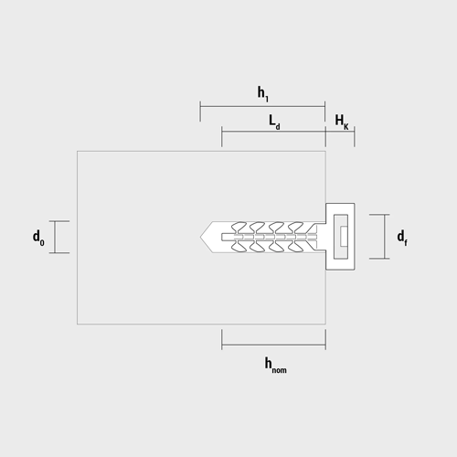 Diblu fixare colier 6x30 mm, cap mare gri, InsertFIX CELO, 125 buc