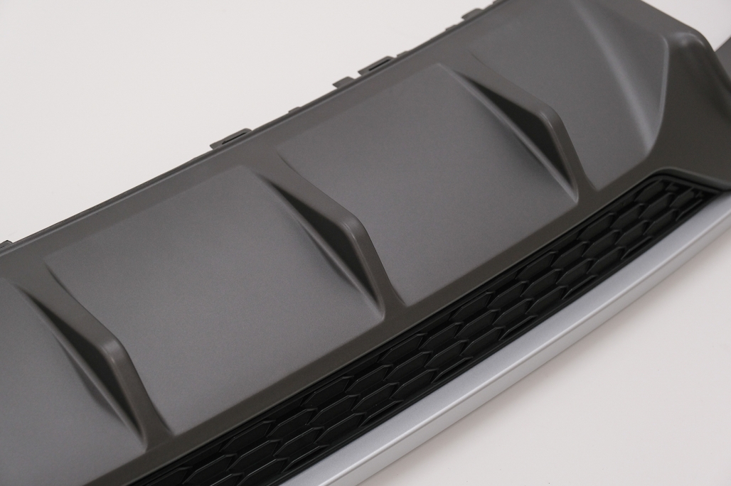 Fabricat din polipropilena de buna calitate, difuzorul este gandit pentru utilizare de zi cu zi, avand un finisaj elegant in gri grafit cu insertii negre. Designul cu evacuare dubla completeaza vizual bara spate si pune in valoare liniile masinii fara modificari estetice agresive.