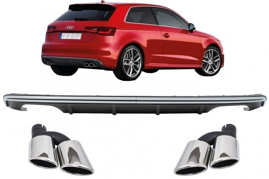 Difuzor Bara Spate Audi A3 8V Hatchback Sportback (2012-2015) S3 Design cu Ornamente Evacuare Performance AutoTuning