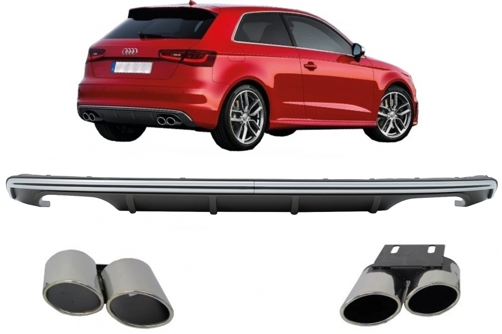 Difuzor Bara Spate compatibil cu Audi A3 8V Hatchback Sportback (2012-2015) S3 Design cu Ornamente Evacuare