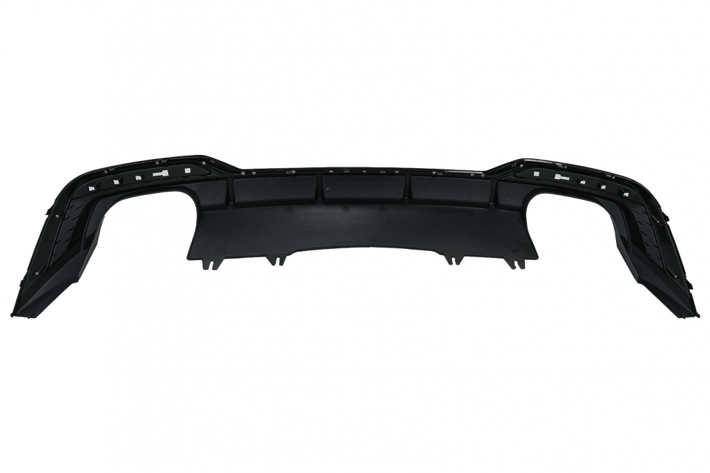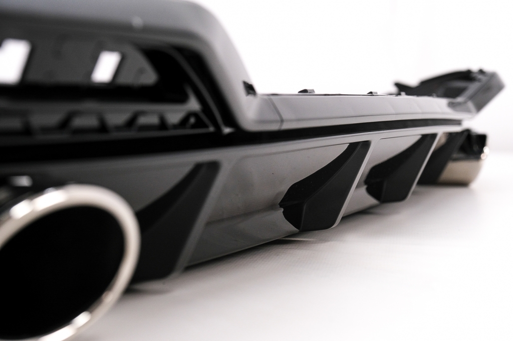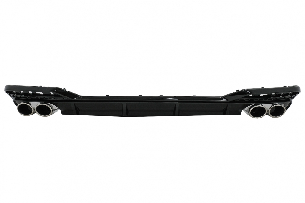 Acest difuzor spate Audi A5 F5 este realizat din plastic de calitate superioară, rezistent și potrivit pentru utilizare zilnică. Pachetul include și un set de ornamente pentru evacuare, pentru un aspect complet și bine finisat.
