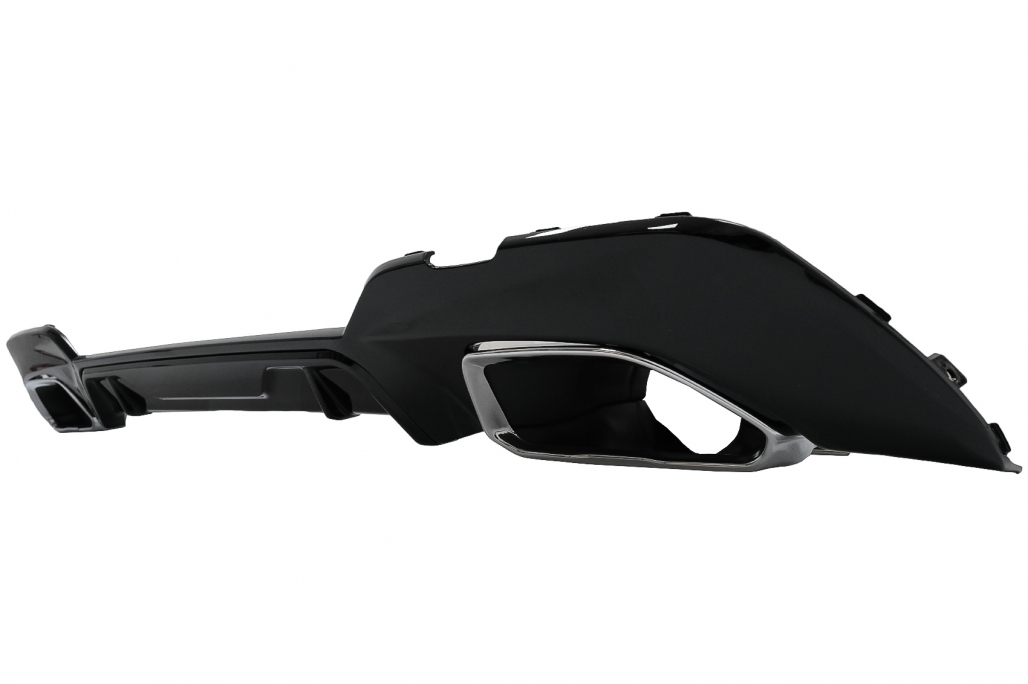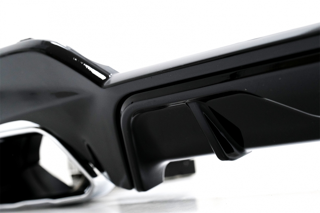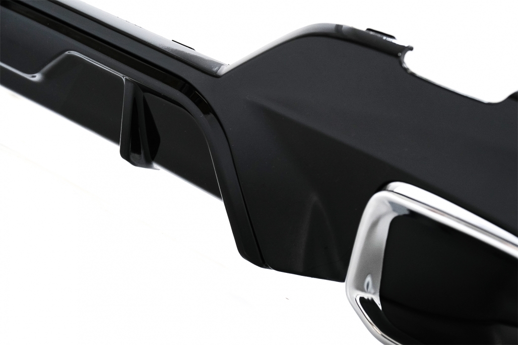 Oferă mașinii tale un plus de personalitate cu acest difuzor bara spate BMW Seria 3, creat în stil M340i Look. Finisajul negru lucios și ornamentele de evacuare cromate completează perfect partea din spate a vehiculului, pentru un aspect mai sportiv, mai modern și mai bine definit.