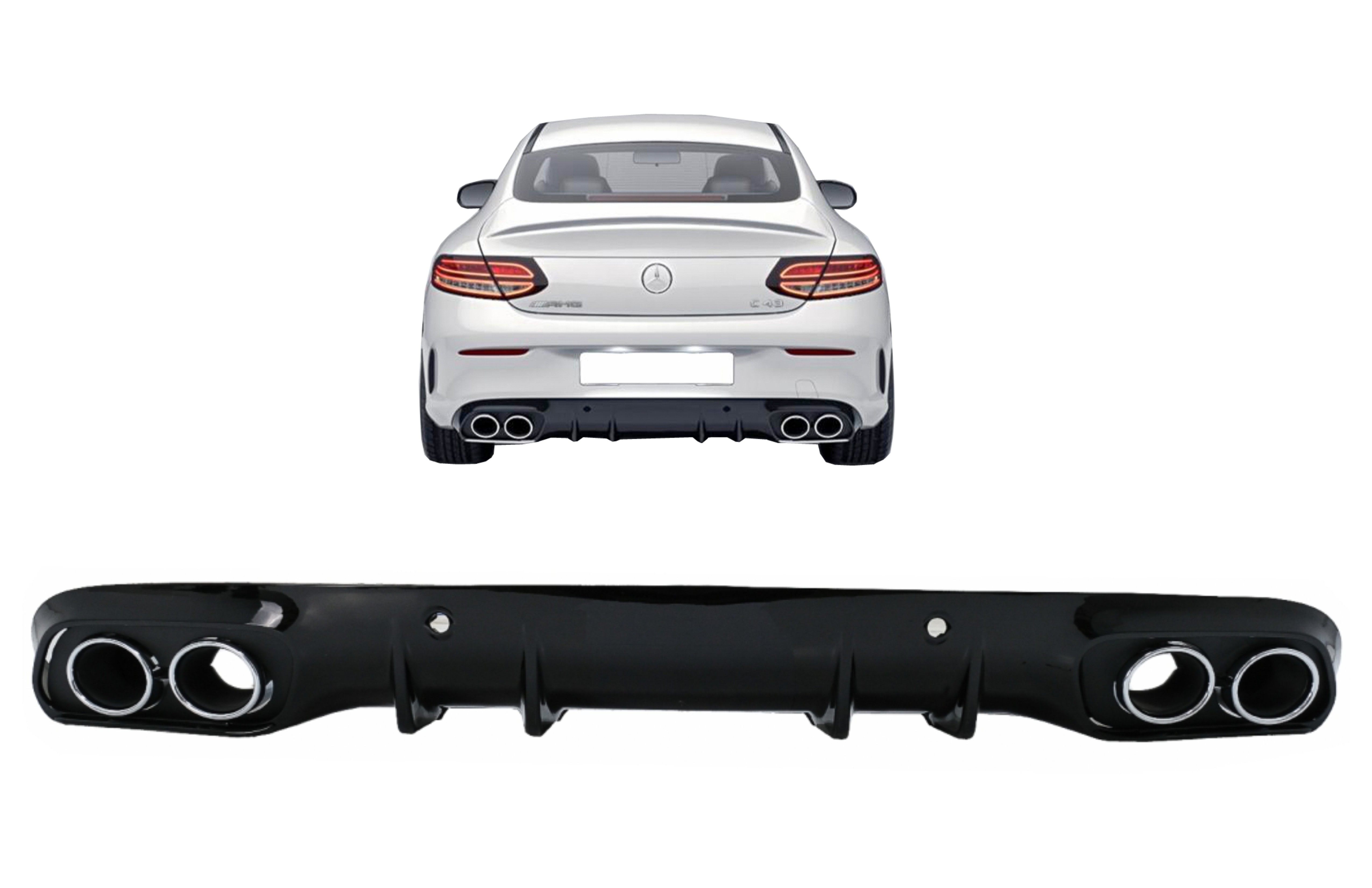 Difuzor bara spate C43 cu evacuare dubla pentru Mercedes C-Class C205 A205 2014-2019