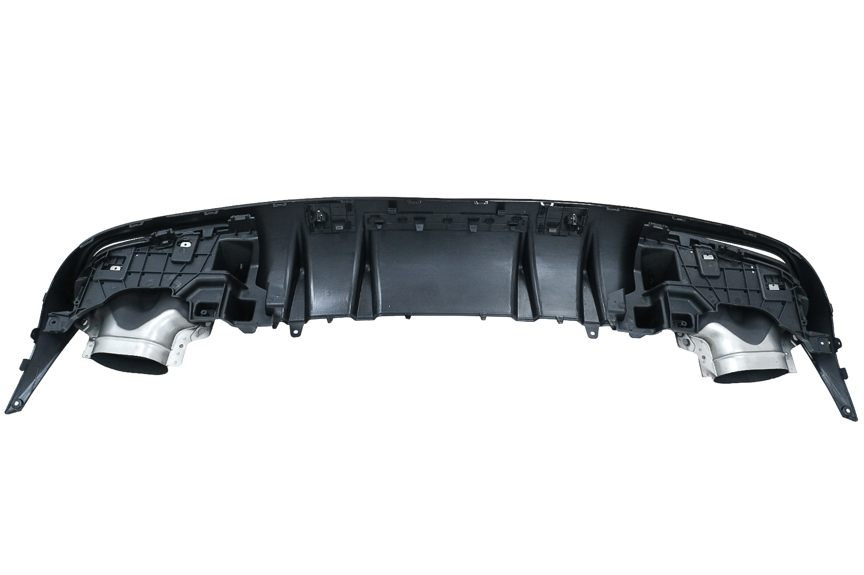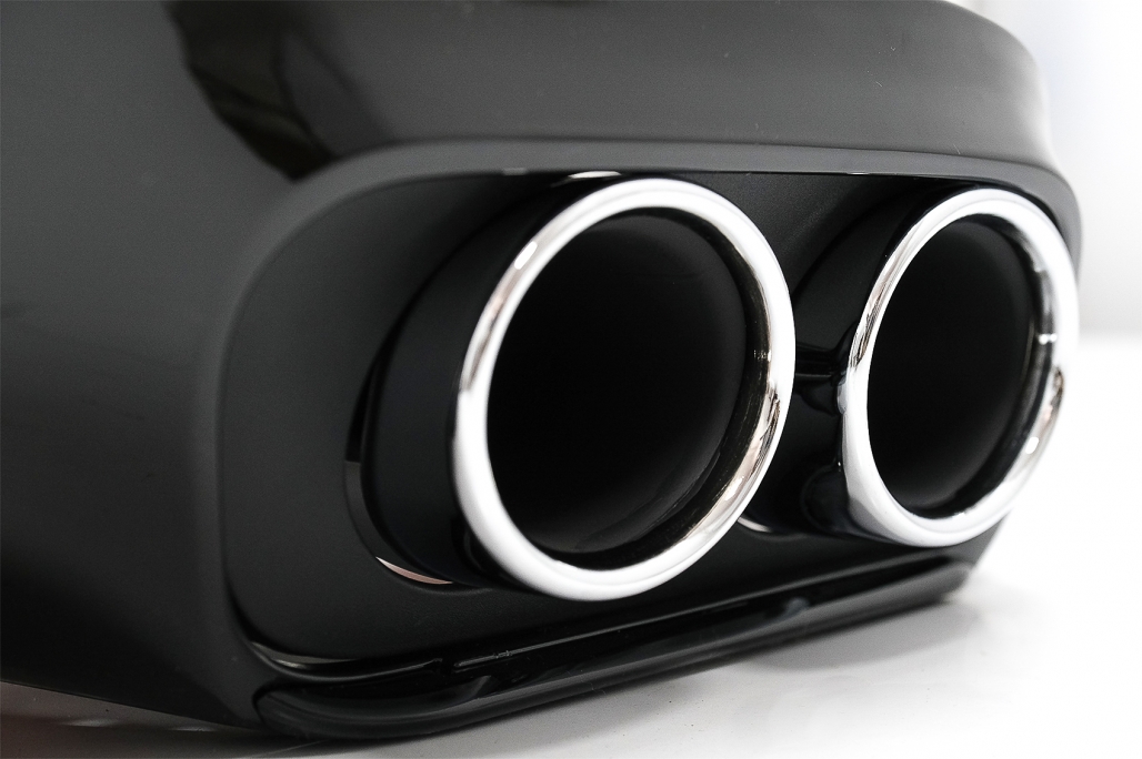 Produsul este fabricat din plastic ABS rezistent si vine echipat cu orificii pentru senzorii de parcare PDC. Ornamentele pentru evacuare sunt realizate din inox 304, pentru durabilitate si un aspect premium. Nu necesita vopsire, fiind pregatit pentru montaj.