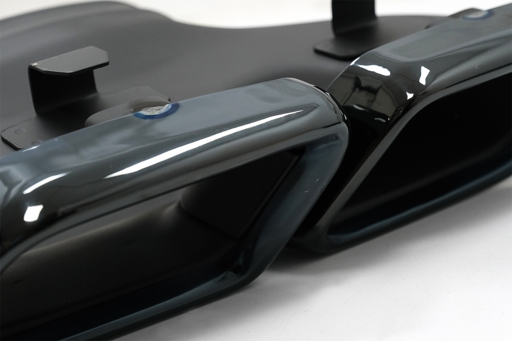 Fabricat din plastic ABS rezistent, difuzorul are finisaj negru mat cu insertie contrastanta si este compatibil cu prinderile originale. Setul include si ornamente evacuare negre din otel inoxidabil 304, pentru un aspect premium si durabilitate foarte buna in timp.