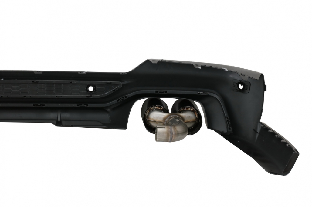 Difuzor Bara Spate Evacuare Dubla Difuzor de aer cu evacuare dubla fabricat din polipropilena de cea mai buna calitate Difuzorul nu necesita vopsire, el fiind vopsit in culoarea negru lucios Ornamentele pentru sistemul de evacuare sunt fabricate din otel inoxidabil 304 Finisaj: Negru Lucios
