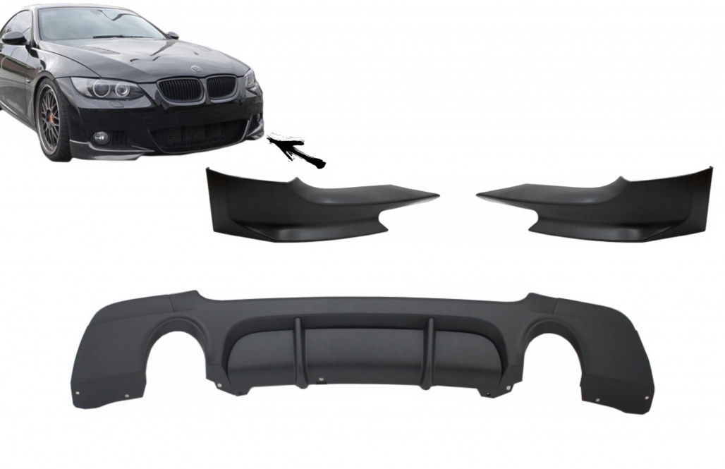 Difuzor Bara Spate Cu Evacuare Dubla cu Prelungiri Bara Fata compatibil cu BMW E92 3 Series (2006-2010) M Performance Design