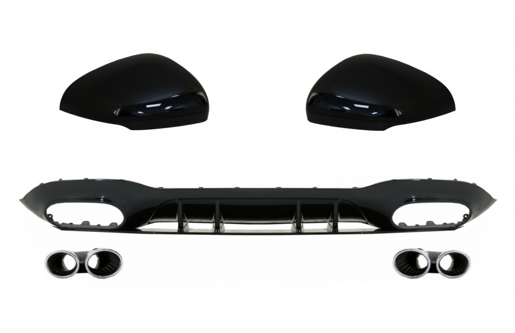 Difuzor Bara Spate cu Evacuari Crom si Capace Oglinzi Mercedes A-Class V177 Sedan (09.2018-2022)