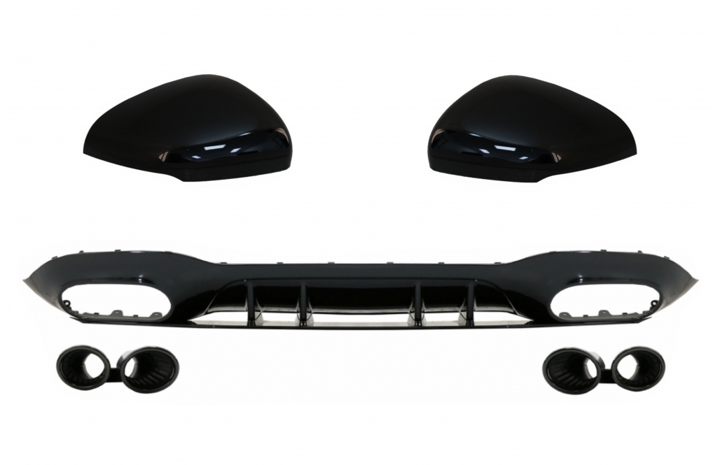 Difuzor Bara Spate cu Evacuari Negre si Capace Oglinzi compatibil cu Mercedes A-Class V177 Sedan (09.2018-2022)