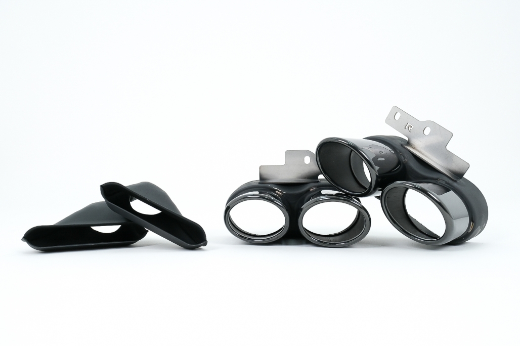 Difuzorul este fabricat din polipropilenă rezistentă, iar ornamentele pentru evacuare sunt realizate din oțel inoxidabil 304, material apreciat pentru durabilitate și rezistență la coroziune. Designul cu evacuare dublă completează perfect linia dinamică a modelului Audi A6 C8 Avant sau Sedan.