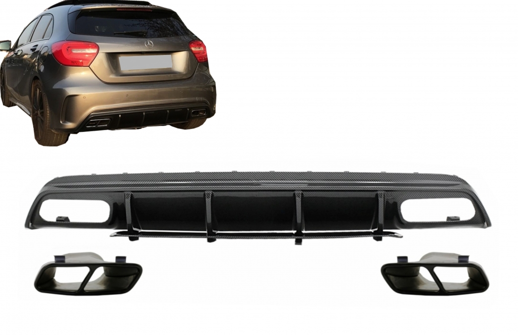 Difuzor Bara Spate cu Ornamente Evacuare compatibil cu Mercedes A-Class W176 (2013-2018) A45 Facelift Design