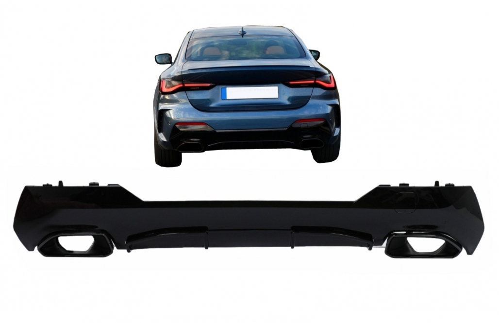Difuzor Bara Spate cu Ornamente Evacuare Negre compatibil cu BMW 4 Series G22 G23 M Sport (2020-up) M440i Design