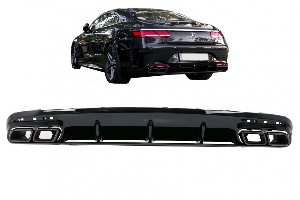 Difuzor Bara Spate cu Ornamente evacuare Negre Mercedes S-Class C217 Coupe (2014-2020) S63 Facelift Design Performance AutoTuning