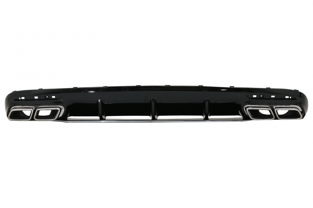 Difuzor Bara Spate cu Ornamente evacuare si Grila Centrala compatibil cu Mercedes S-Class C217 Coupe (2018-2020) S63 GT-R Design Negru Crom