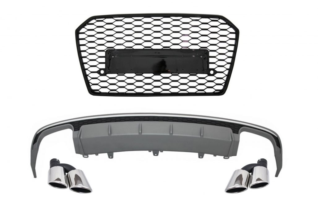 Difuzor Bara Spate cu Ornamente toba si Grila Bara Fata AUDI A6 4G Facelift (2015-2018) S6 Design Performance AutoTuning