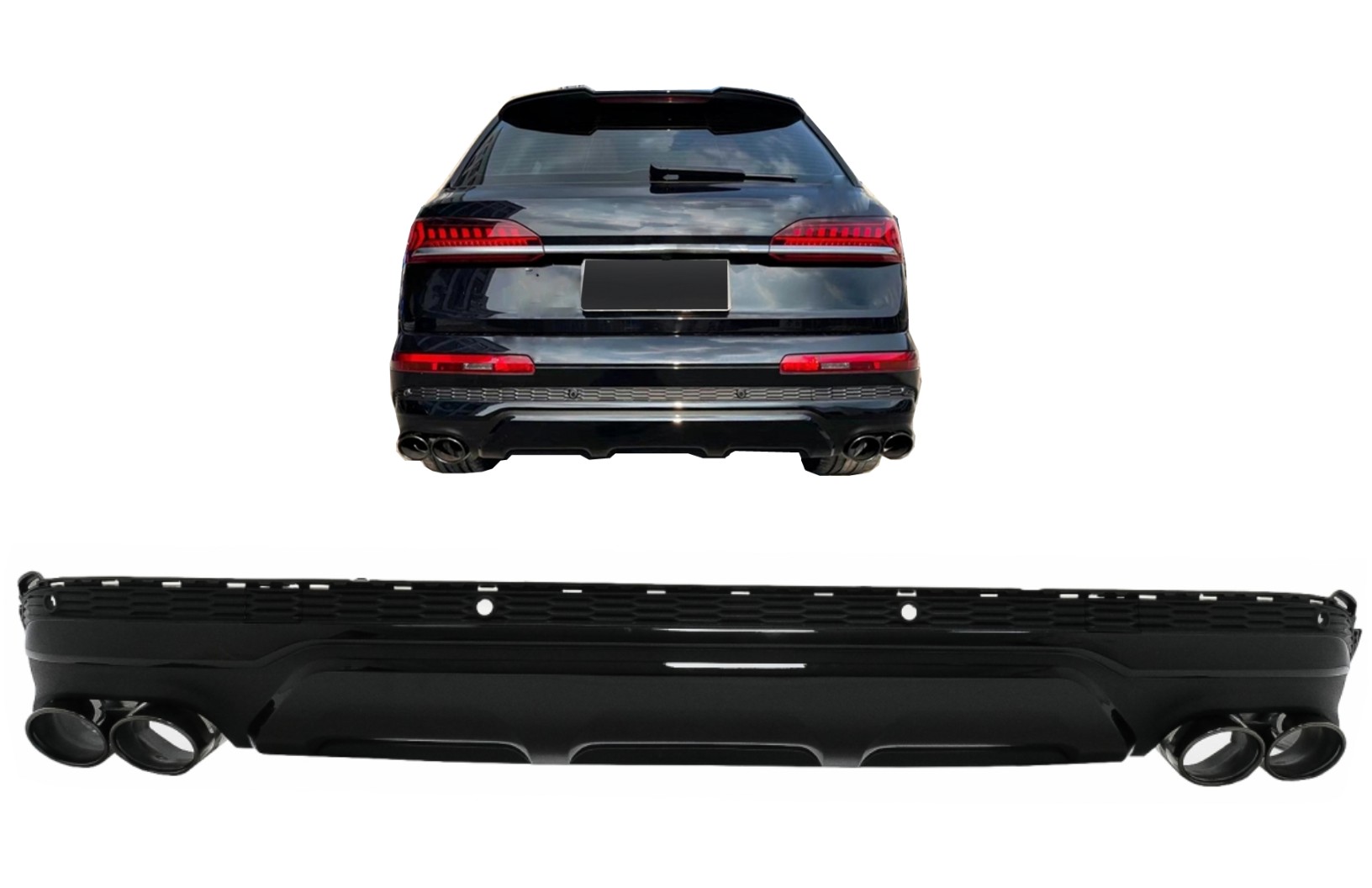 Difuzor Bara Spate Evacuare Dubla Audi Q7 SUV 4M Facelift (2020-2025) Negru