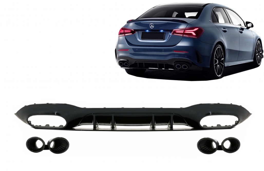 Difuzor Bara Spate compatibil cu Mercedes A-Class V177 Sedan (2018-up) Evacuari Negre