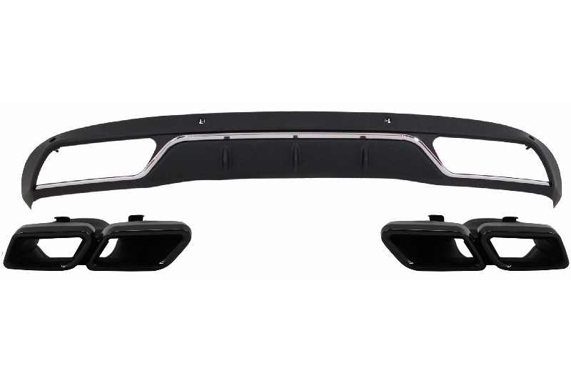Setul include difuzor spate negru și ornamente evacuare negre, concepute pentru a îmbunătăți aspectul posterior al mașinii. Difuzorul este fabricat din plastic ABS, iar ornamentele sunt realizate din oțel inoxidabil 304, pentru rezistență bună la uzură și un aspect premium.