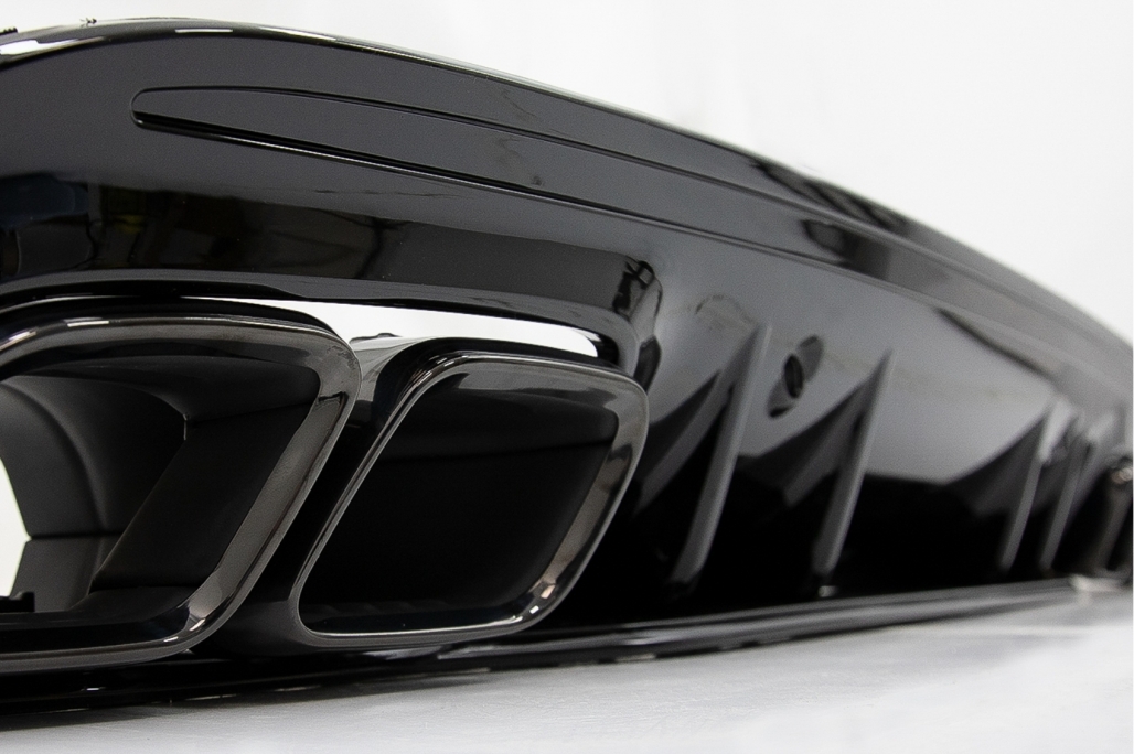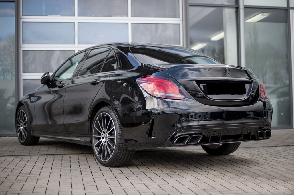Setul include difuzorul spate și ornamentele de evacuare, fiind conceput pentru a îmbunătăți vizual partea din spate a mașinii. Finisajul negru lucios și tipsurile din inox negru completează perfect liniile elegante ale modelului C-Class.